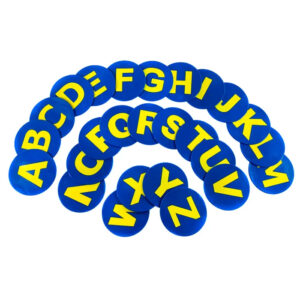 SS-Poly Enterprises Alphabet Spots, 9 Inches, Poly Molded Vinyl, Blue, Set of 26