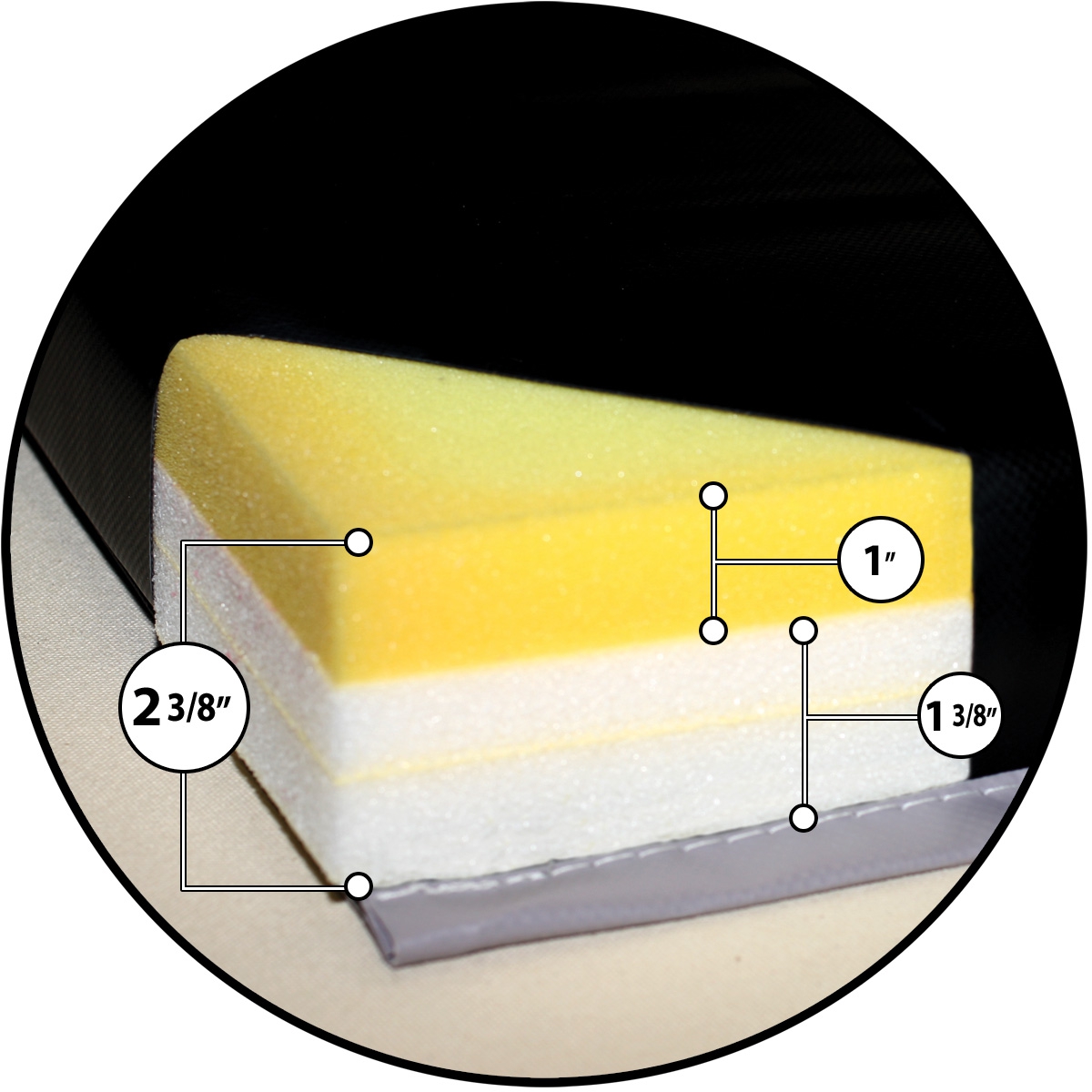 - Foam: 12” /30cm 1.5 lb. density polyurethane